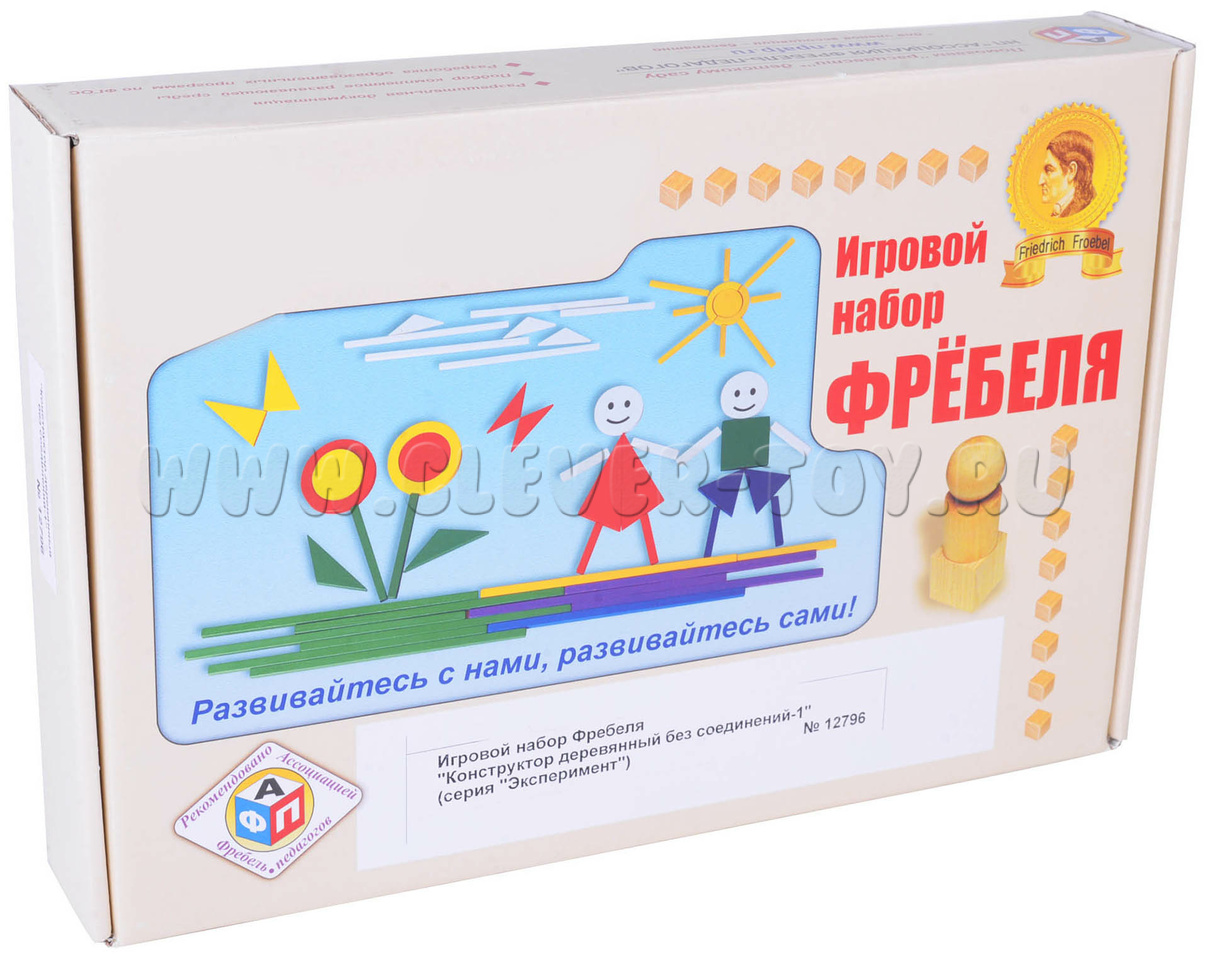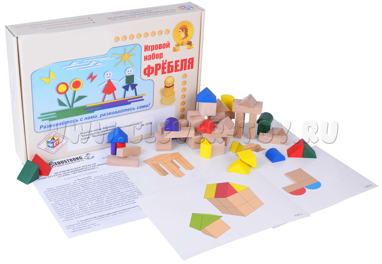 Игровой набор Фребеля «Конструктор деревянный без соединения-1» предназначен для детей от 3-х лет. С этим набором ребенок познакомится с геометрическими фигурами и цветами. Впоследствии пользуясь карточками из набора, ребенок может почувствовать себя строителем и собрать свой замок, а также пользуясь своим воображением, дети смогут придумать и создать все, что им захочется.