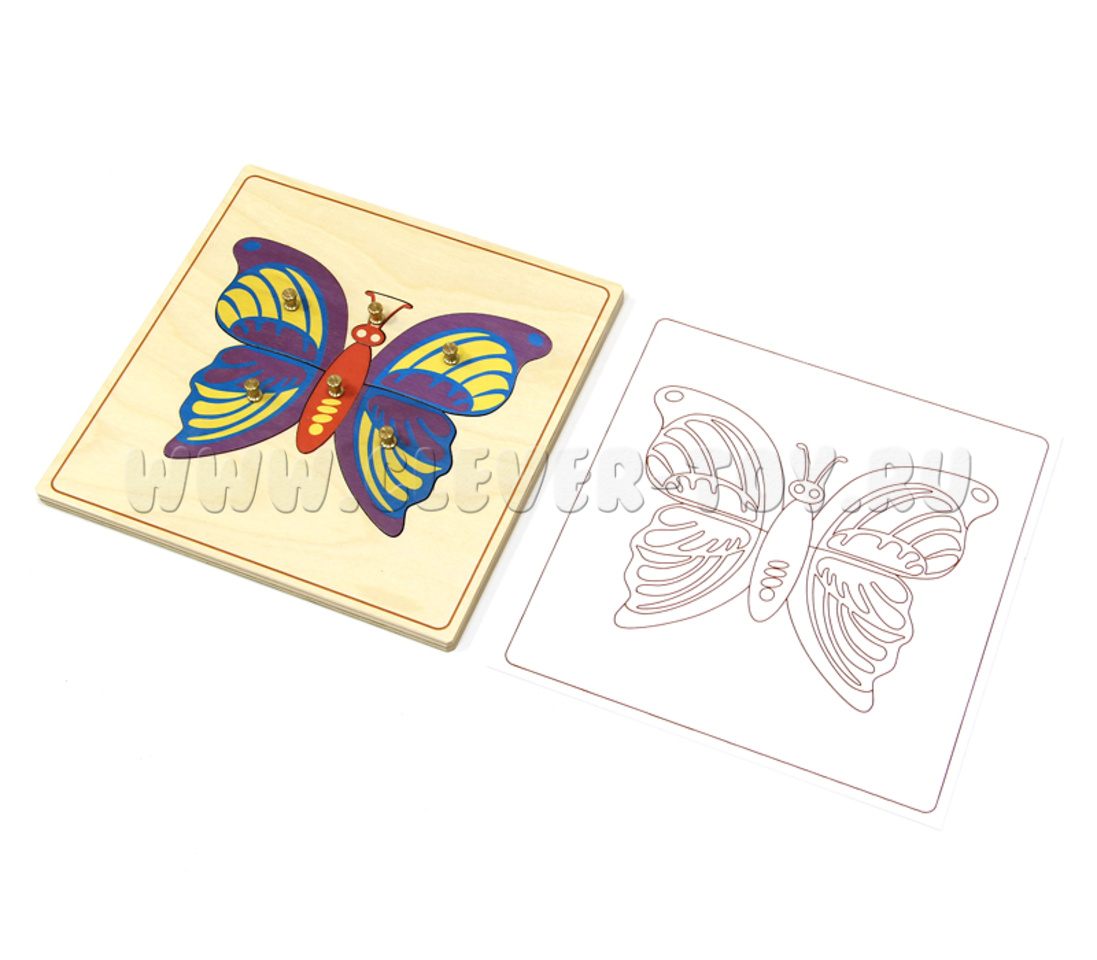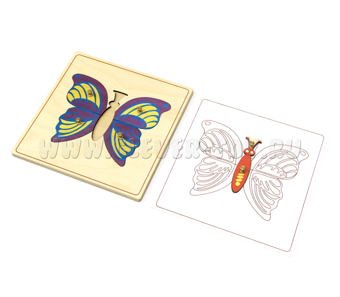Знакомство со строением бабочки путем составления целого из частей и проговаривания их названий способствует развитию речи, увеличению словарного запаса и формированию восприятия формы.