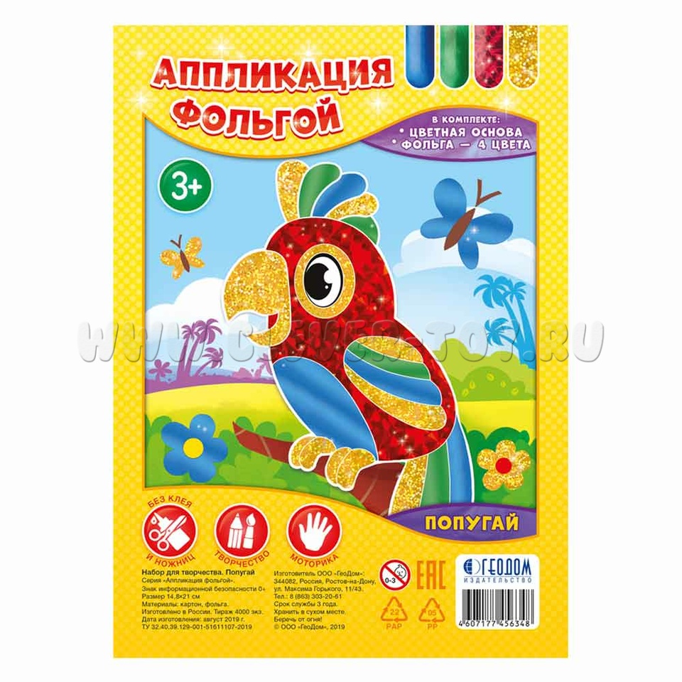 Набор для творчества. Серия Аппликация фольгой. Попугай. 14,8х21 см.
