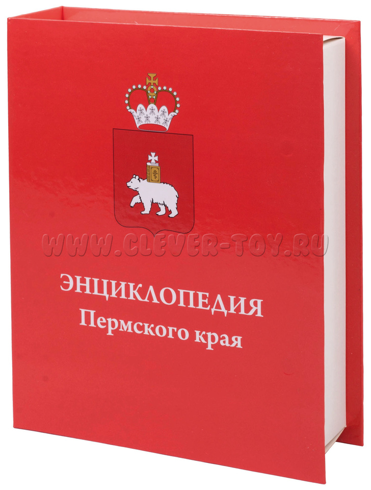 Набор «Энциклопедия Пермского края» оформлен как большая подарочная красная книга с гербовой символикой края.