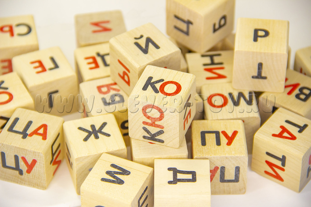 Набор кубиков "Я читаю" с нанесенными на грани буквами и слогами для игр на составление слов.