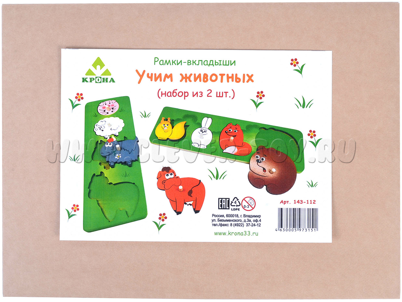 Рамки вкладыши "Учим животных" (набор из 2-х штук) (остатки)