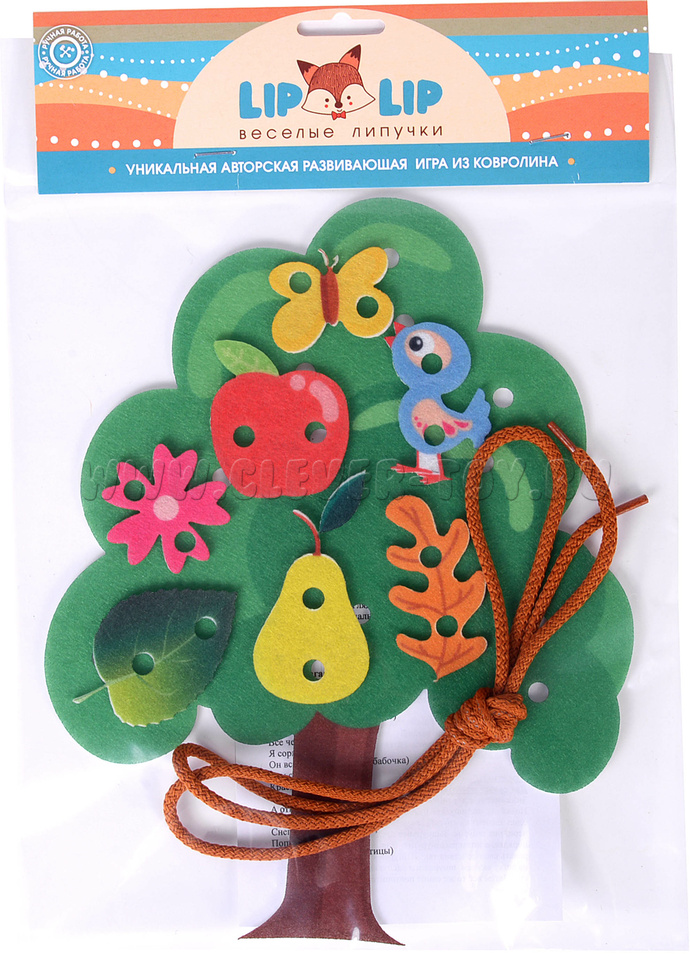 Шнуровки различного типа давно и успешно используются педагогами и родителями для раннего развития детей. Дерево из фетра поможет сделать это развитие интересным и весёлым. Благодаря листикам, фруктам, цветочкам, птичкам, которые крепятся к фетровому дереву, малыш научится шнуровать, завязывать узелки и бантики.