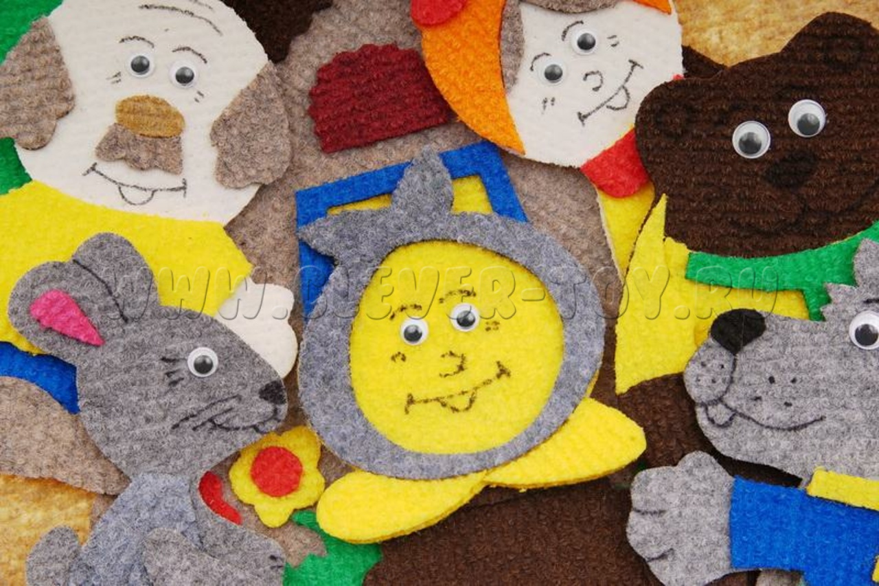 Герои сказки «Колобок» буквально оживают в руках вашего малыша. Ковролиновые герои сказки на липучках: