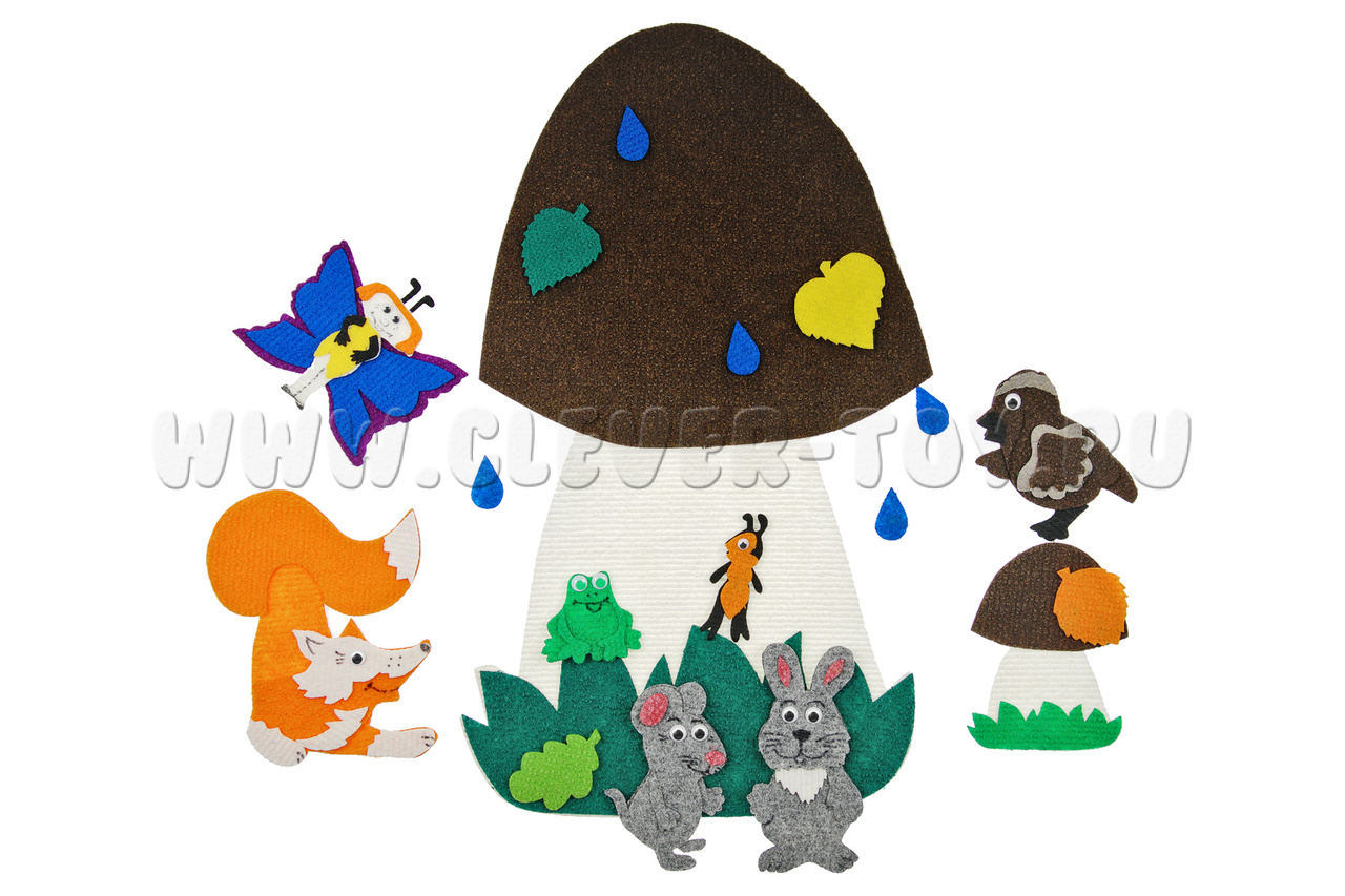 Набор «Под грибом» рекомендован специалистами дошкольного образования, используется в детских садах и развивающих центрах, а теперь доступен по выгодной цене для домашнего использования и для самостоятельной игры детей.