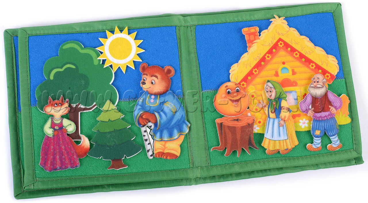 Авторская развивающая книга из ковролина с фигурами на липучках от российской компании «Lip-Lip» по мотивам русской народной сказки «Колобок». Ручная работа.