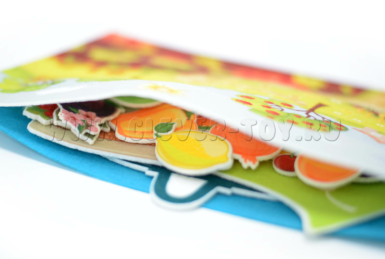 Приклеивая фигурки на игровое поле, ребенок совершенствует мелкую моторику, мышление, речь и фантазию, а также успешно используется на занятиях в детских садах. Для того что бы детали не терялись, сзади сделан кармашек, в который после игры удобно их прятать. Купить развивающее пособие можно в нашем магазине с доставкой в любой город России!