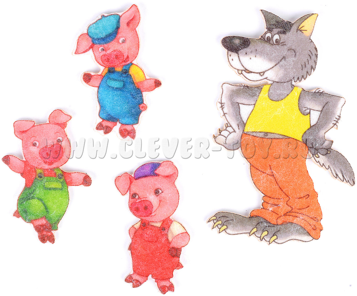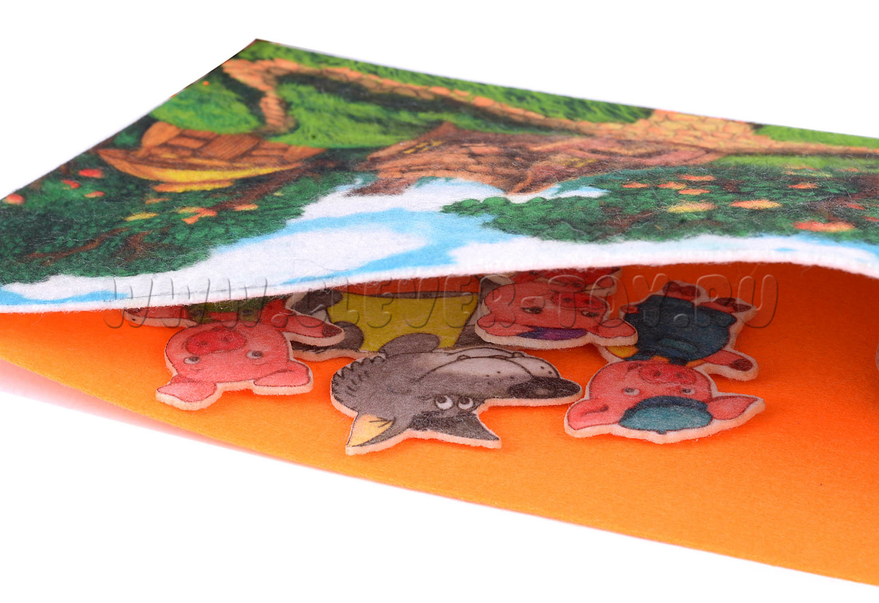 Набор Веселых липучек “Три поросенка“ сделан из фетра. В комплекте идет игровое поле и персонажи из сказки. А также есть карман, куда можно убрать игрушки после игры.