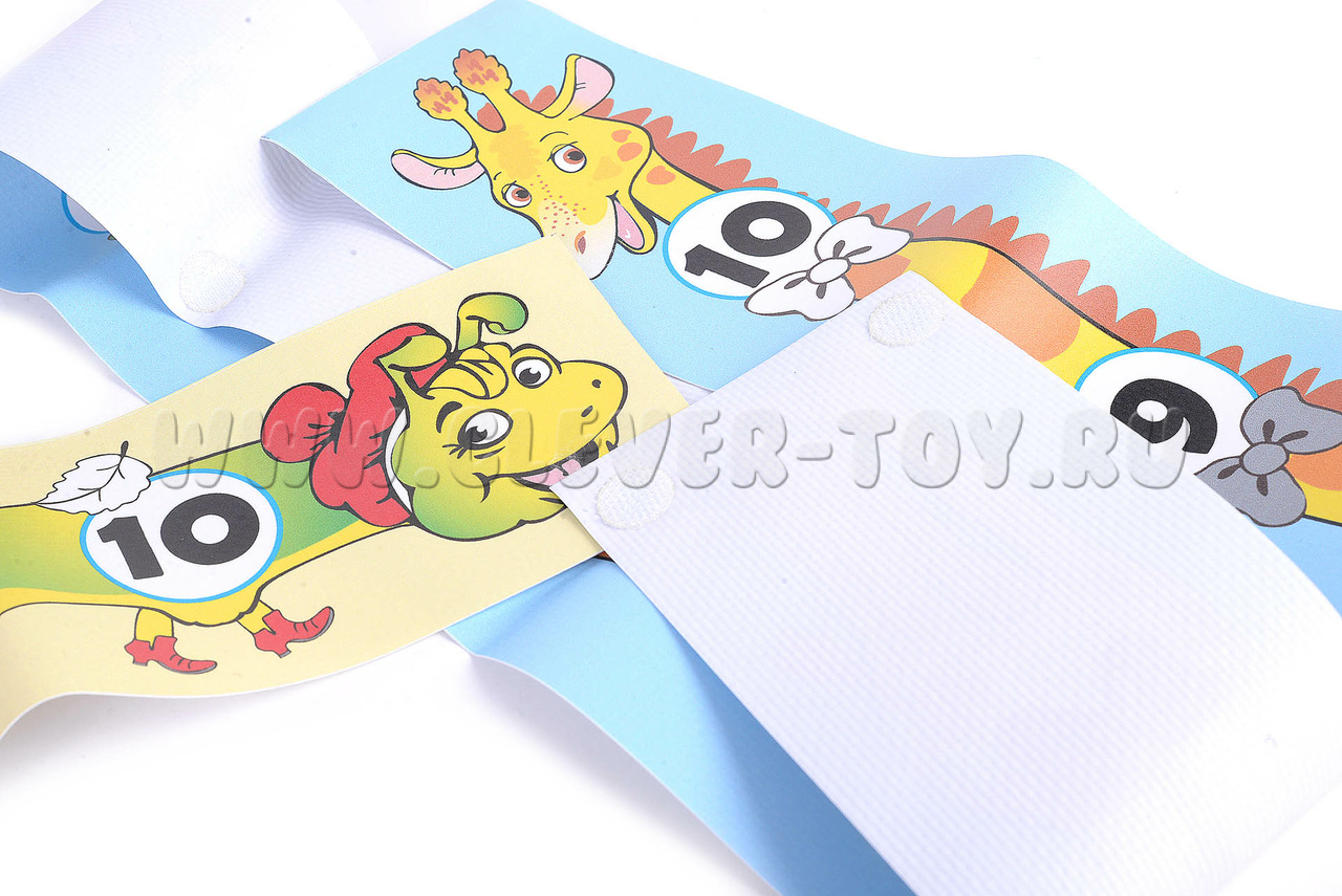 Две цветные полоски с делениями (баннерная ткань 113,7 х 8,2 см и 10,5 х 8,2 см, крепление – липучка) с делениями, соответствующими «Коврографу Ларчик» и числовым рядом от 1 до 10.