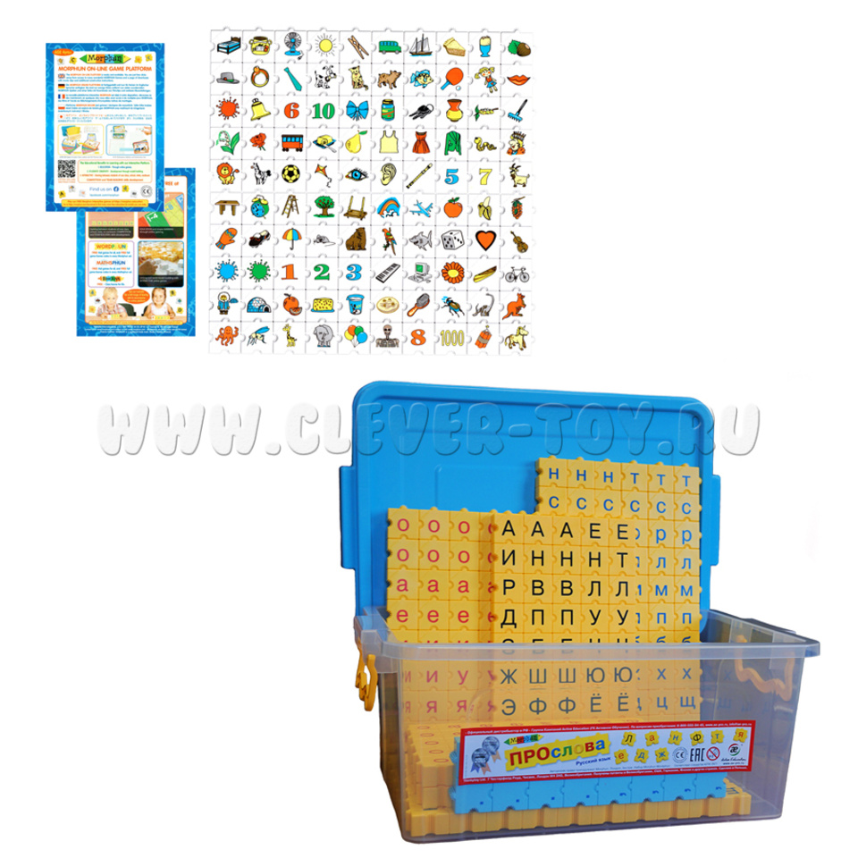 Полный набор необходимого игрового оборудования и учебно-наглядных пособий, включая мини-роботы Bee-Bot, образовательные конструкторы Morphun «WORDPHUN ПРОслова» Русский язык 306 деталей, «Мои первые слова».