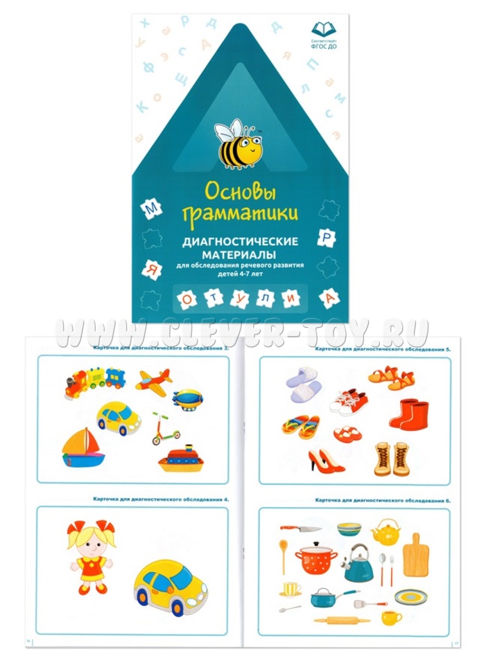 Брошюра формата А4, объемом не менее 30 страниц, содержащая подробные инструкции для педагога по проведению диагностики, задания для детей в виде 22 диагностических карт, иллюстративные материалы и формы протоколов обследования.