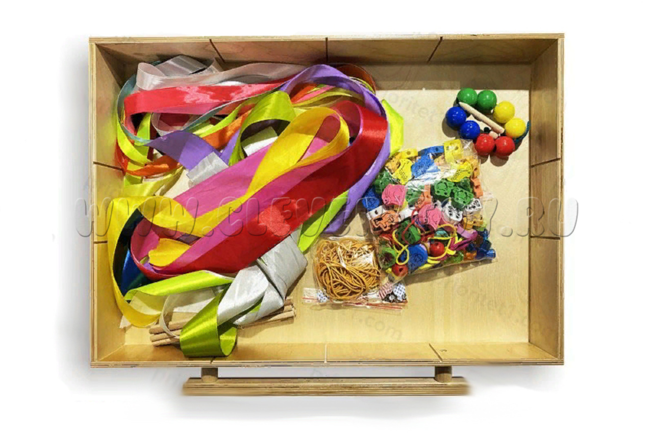 Яркий набор из элементов разной фактуры и размера. Гладкие, шершавые, мелкие предметы требуют усилий, чтобы их удержать, что делает кисти рук более цепкими.