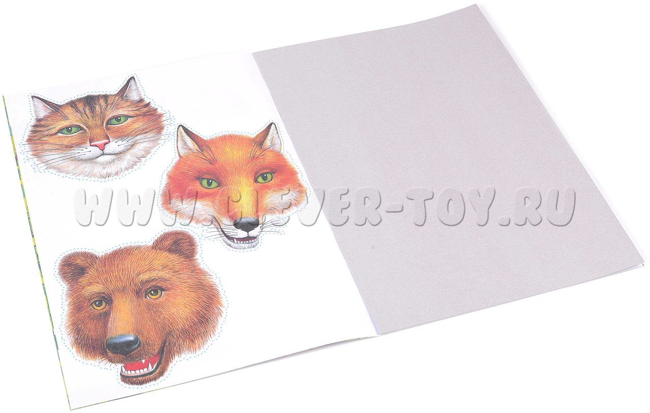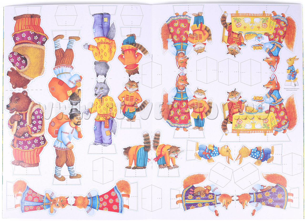 Данный театр включает в себя: поле формата А2, действующих персонажей выполненных из плотного картона, созданных для показа настольного театра. Средний размер персонажей, составляет 12 см. (Задача ребенка состоит в том, что нужно вырезать по пунктирным линиям персонажей, "шапочки"- головы главных персонажей для показа сказок выполненных из плотной бумаги.