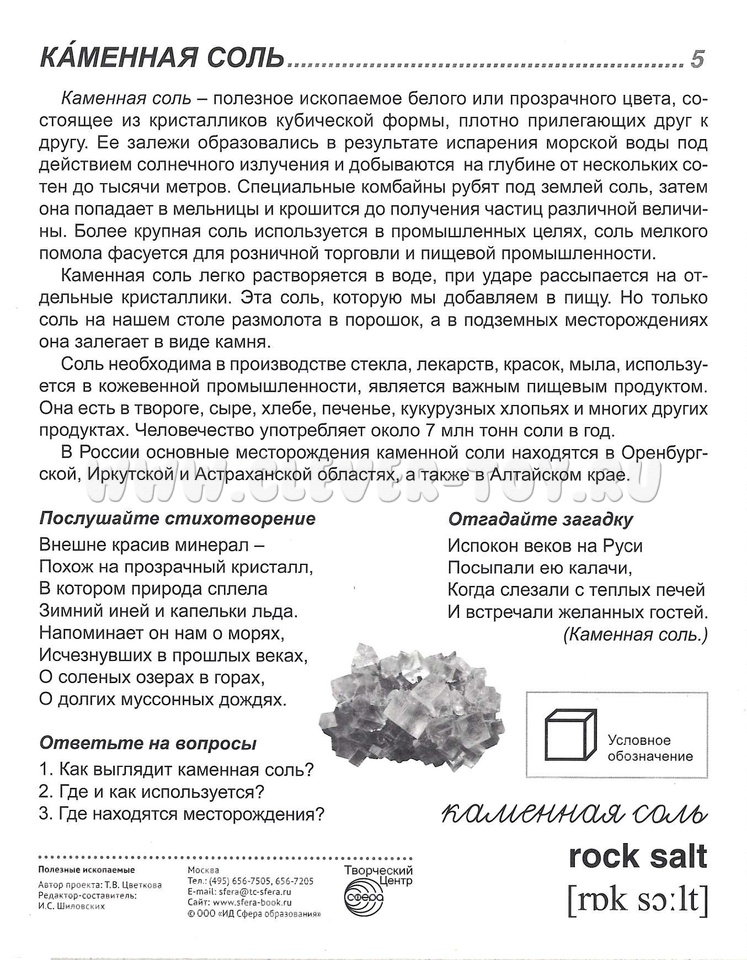 На лицевой стороне каждой карточки дается цветное изображение полезного ископаемого и его условное обозначение, на обратной - подробное описание, из которого дети узнают, какими бывают полезные ископаемые, как их добывают, в какой сфере жизнедеятельности они используются.