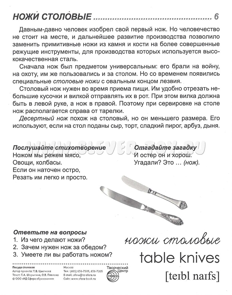 На обороте каждой предметной картинки - описание, вопросы для ребёнка, название на русском и английском языках.