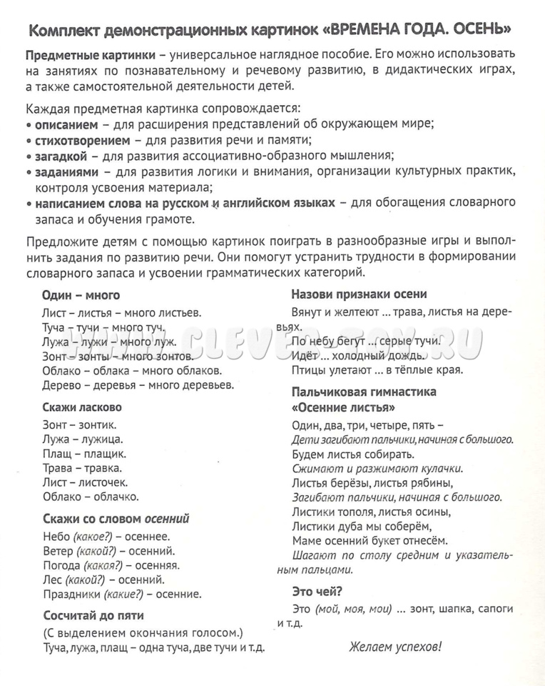 Набор демонстрационных картинок Времена года. Осень. Предметные картинки - универсальное наглядное пособие. Его можно использовать на занятиях по познавательному и речевому развитию, в дидактических играх, а также самостоятельной деятельности детей.