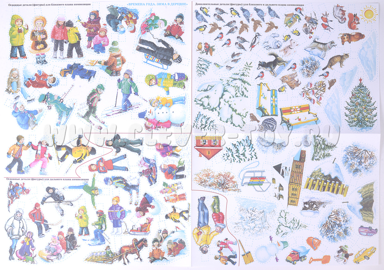 - плакат (А1) с изображением основных и дополнительных фигурок (100-150 штук) для вырезания и наклеивания на сюжетную картину;