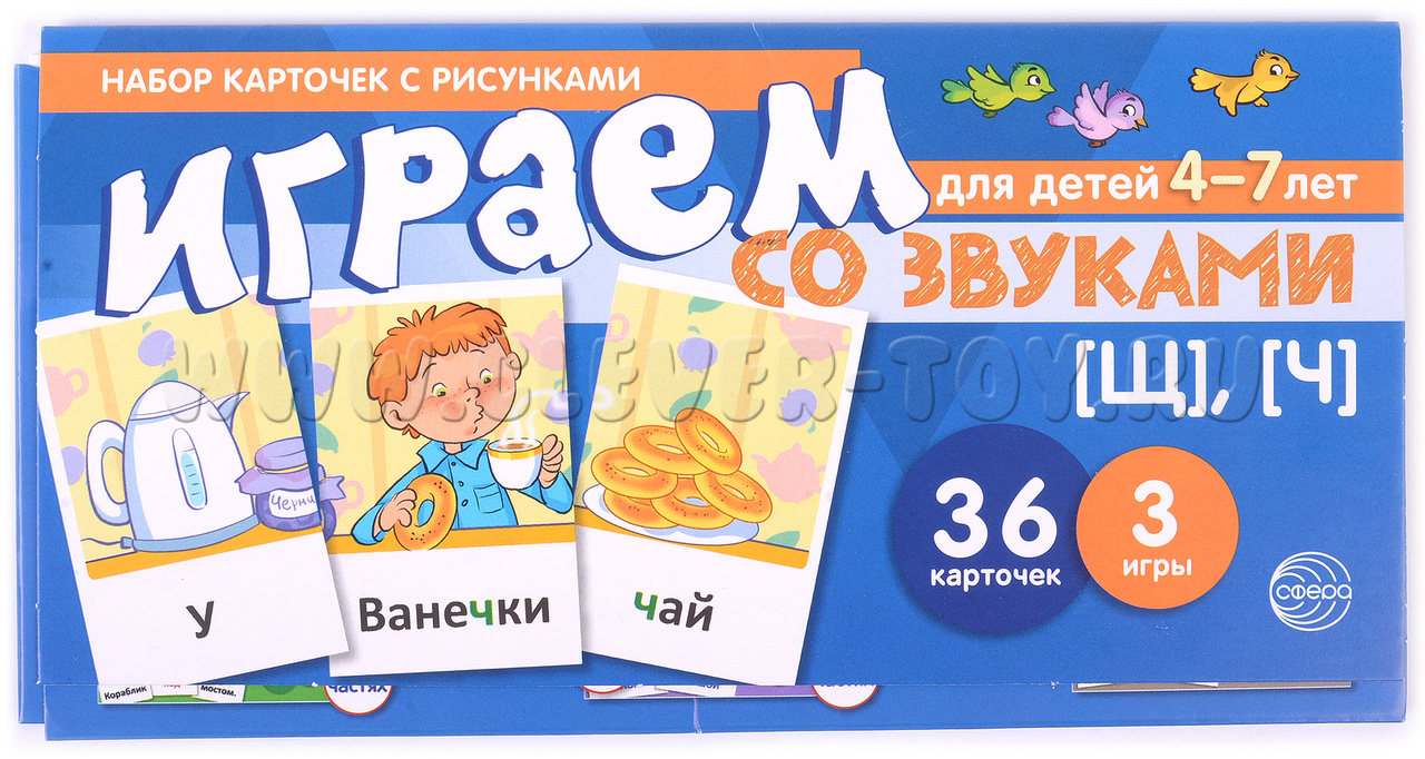 Комплект состоит из 12 обучающих картинок, 36 карточек и 3 игр. Он является продолжением комплекта "Играем со звуками. Звуки [ш], [ж]", выпущенного издательством "ТЦ Сфера";.