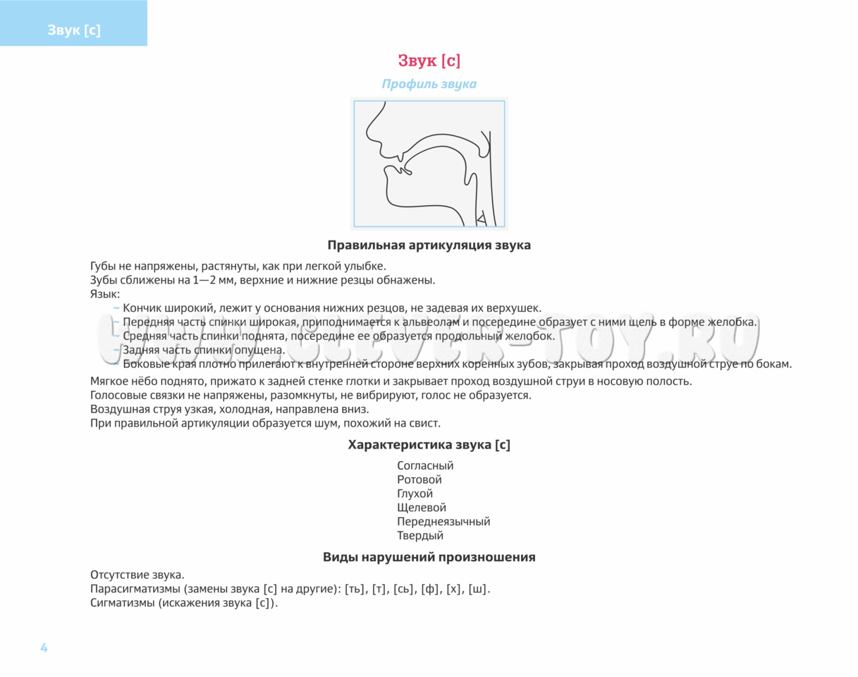 В методическом пособии представлены логопедические профили нормальной артикуляции свистящих звуков, описание правильной артикуляции и характеристика свистящих звуков, виды их нарушений.