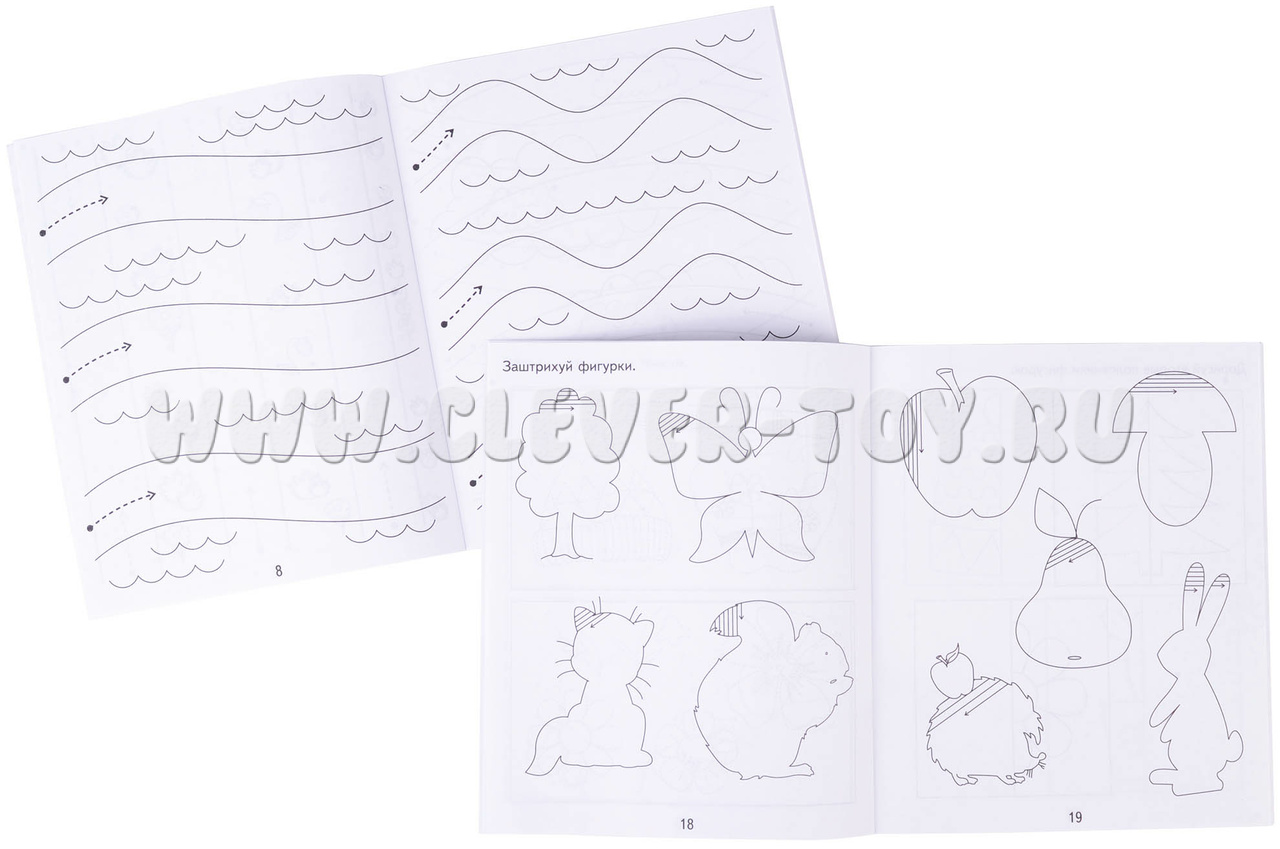 Упражнения подчиняются принципу “от простого к сложному”: задания в первой части тетради подготовят ребенка к выполнению более сложных упражнений во второй, помогут сформировать базовые навыки, необходимые для подготовки к письму.
