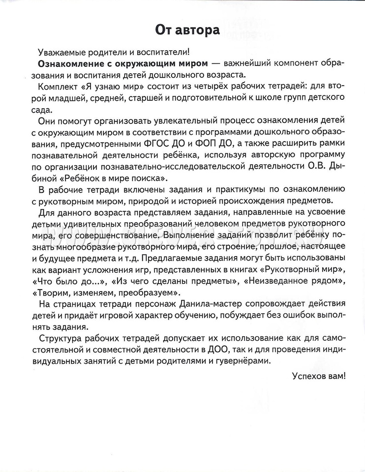 В пособии представлены задания и практикумы по ознакомлению с рукотворным миром, природой и историей происхождения предметов.