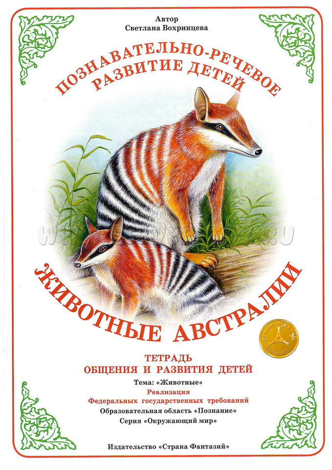 Издательство "Страна фантазий" познавательно-речевое развитие детей, тетрадь общения и развития детей позволит расширить представления о различных видах животных, закрепить новый материал, сформировать представления о данных видах животных по теме: Животные Австралии.