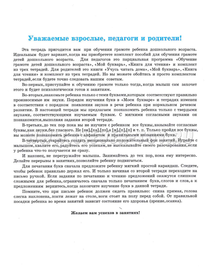 Первая часть из набора для обучения детей грамоте от издательства Детство-Пресс.