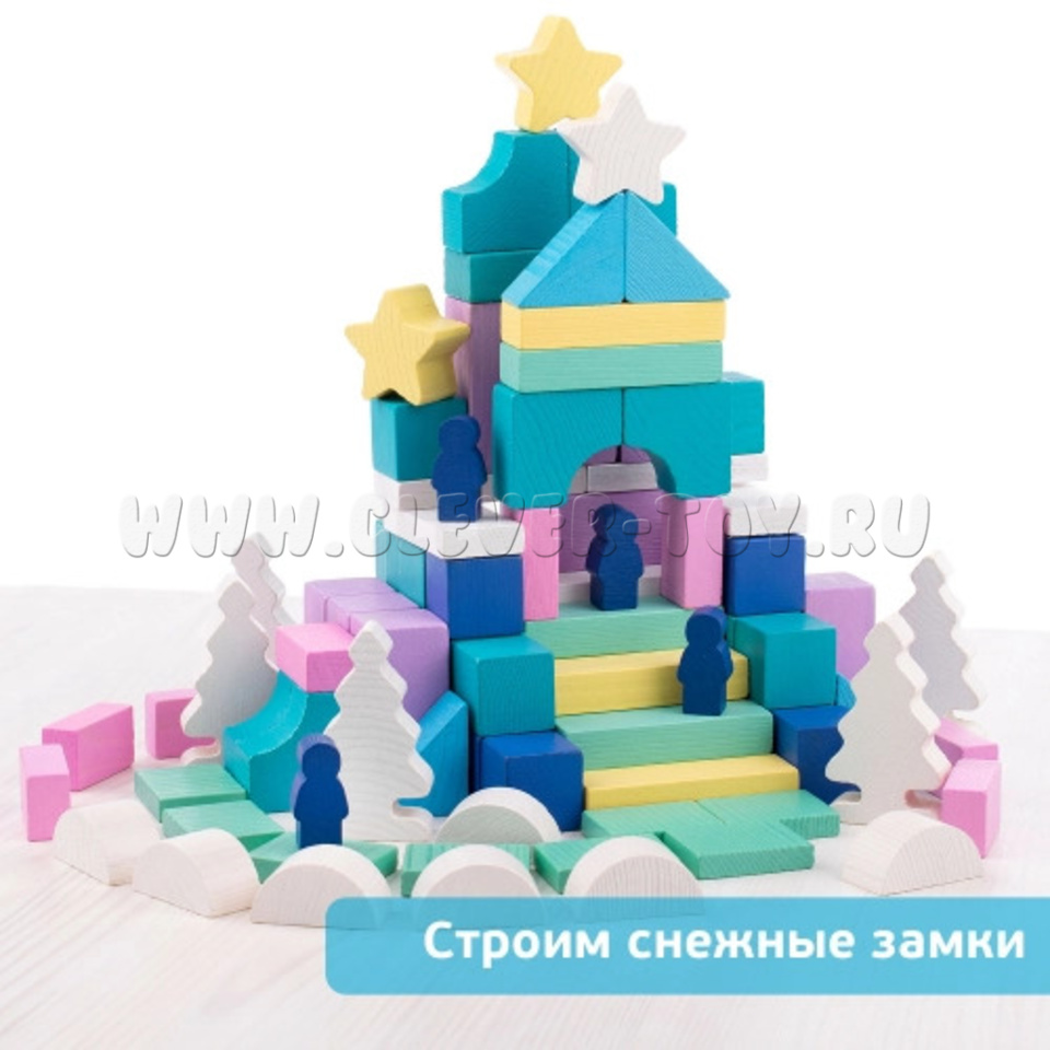 Конструктор выполнен из безопасных для здоровья ребенка экологически чистых материалов и окрашен нетоксичными красками. Расширенный набор деталей (105 штук!) предполагает множество доступных вариантов построек: от детской игровой площадки до снежного замка и ракеты, готовой к запуску в космос.