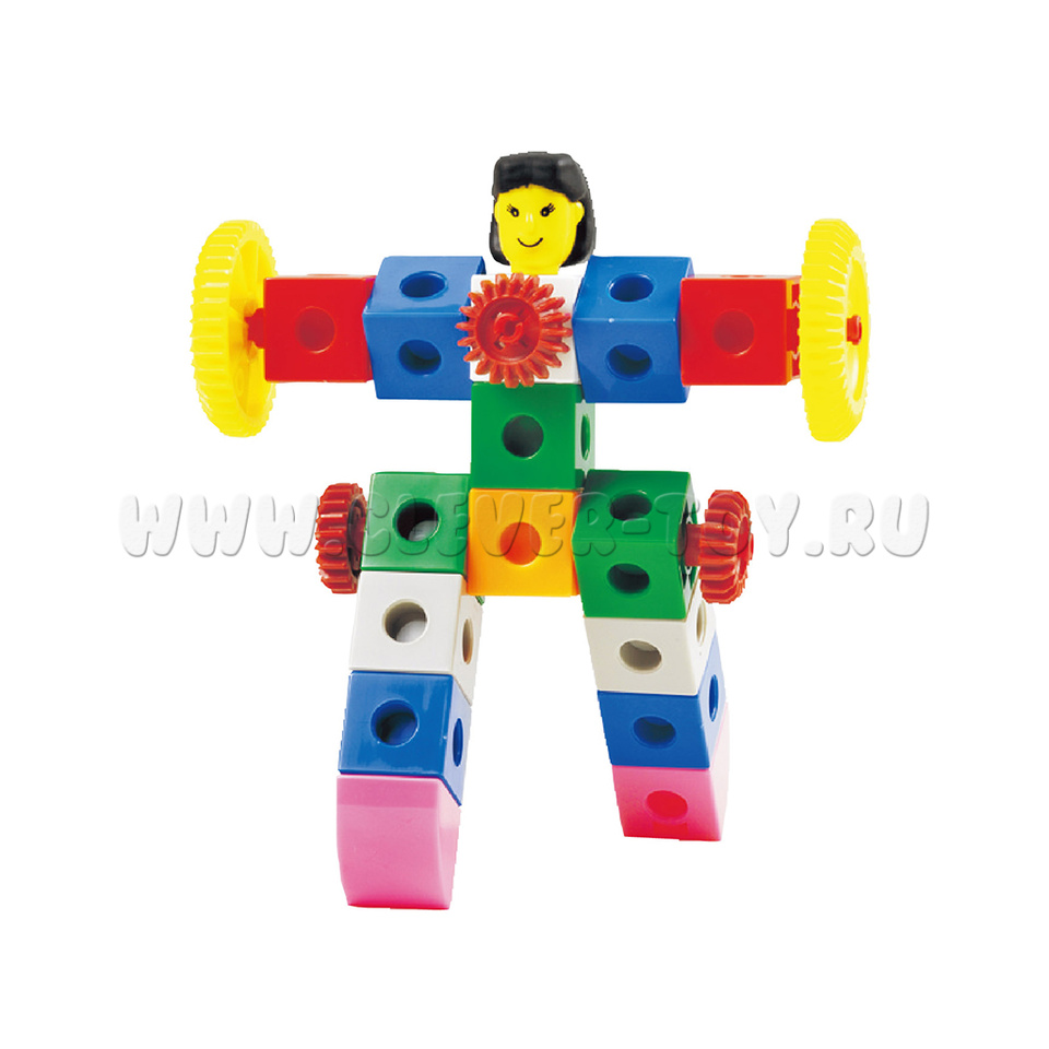 Кубики Gigo имеют уникальную конструкцию. Каждый кубик имеет размер 2*2 см, один выступ-штифт и пять отверстий для соединений. Количество комбинаций соединений кубиков между собой и с другими элементами огромно - это буквально миллионы вариантов. Для прочного соединения детали необходимо повернуть относительно друг друга, как бы вкручивая, а чтобы легко разъединить необходимо повернуть относительно друг друга, немного выкручивая. Благодаря такому соединению модели получаются очень прочными.