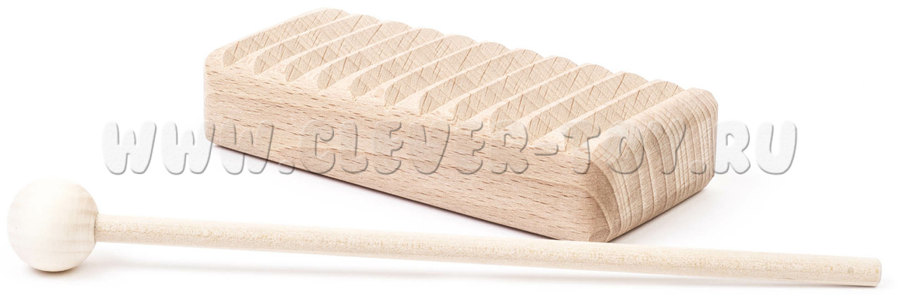 Представляет собой деревянный брус 30х60х100 мм. Музыкальный инструмент комплектуется ударной палочкой. Материал: бук.