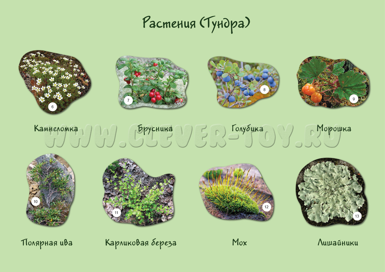 Но и те изображения деревьев, кустарников, цветов, ягод, лишайников, которые вошли в состав набора, внимательному взгляду позволят сделать весьма интересные наблюдения. Например, о том, что, допустим, березы на севере нашей страны, в ее средней части и на Дальнем Востоке сильно отличаются друг от друга. Растения в тундре гораздо более низкорослы, чем в широколиственных лесах. А в степях хозяйничают травы. Если после таких выводов вы зададитесь вопросом "Почему так происходит?", задача нашего пособия будет выполнена.