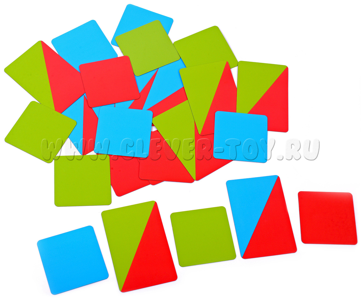 По пять карточек 7cм * 7 см красного, синего и зелёного цвета для фонетического обозначения отдельных букв или слогов с одной гласной.