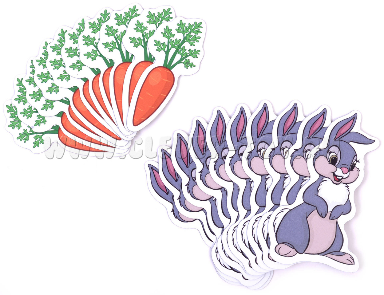 В наборе двадцать магнитных карточек: 10 зайчиков и 10 морковок. Карточки гнутся и не ломаются, моются под краном.