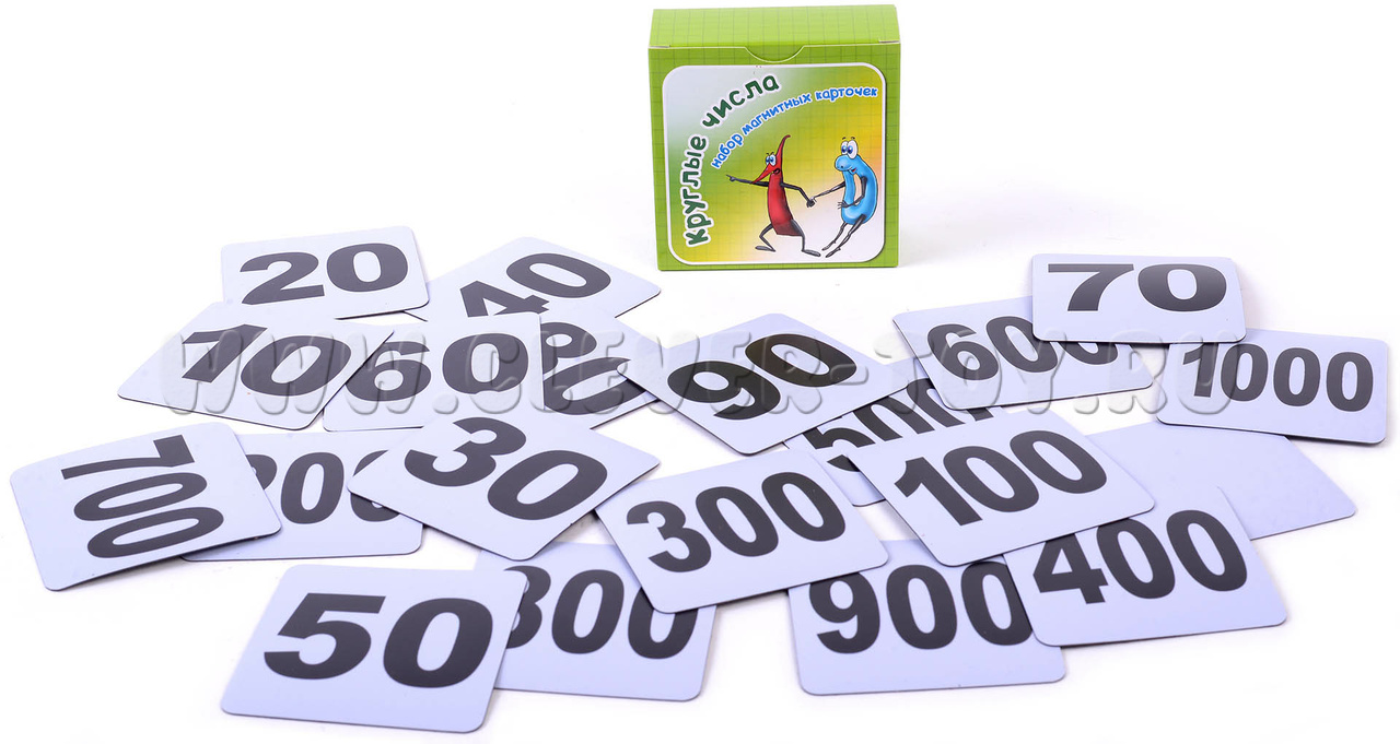 Набор магнитных карточек "Круглые числа" — современное обучающее пособие для эффективного изучения математики. Карточки выполнены на фиолетовом фоне и содержат числа от 10 до 1000.