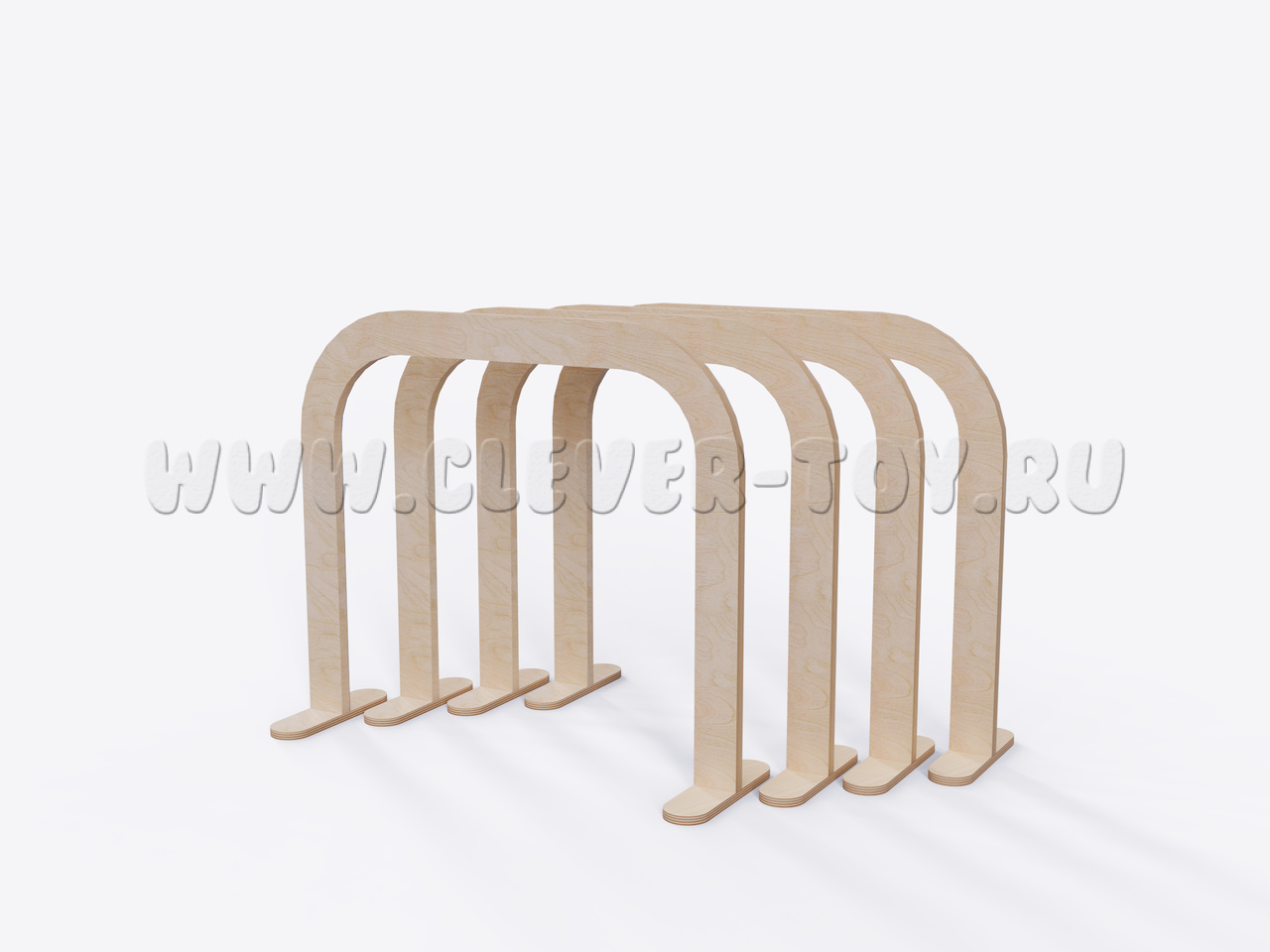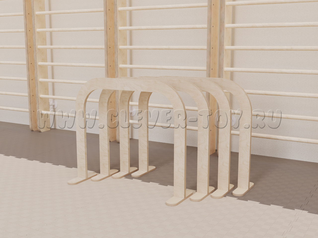 Дуги выполнены из высококачественных и прочных материалов, безопасных для использования детьми. Соответствует актуальным ГОСТам на детскую мебель и инвентарь для спортивных залов, требованиям СанПиН и пожарной безопасности, рекомендациям ФОП ДО по созданию развивающей среды для детей. Гладкие поверхности просты в уходе: достаточно влажной уборки для поддержания высокого уровня гигиены.