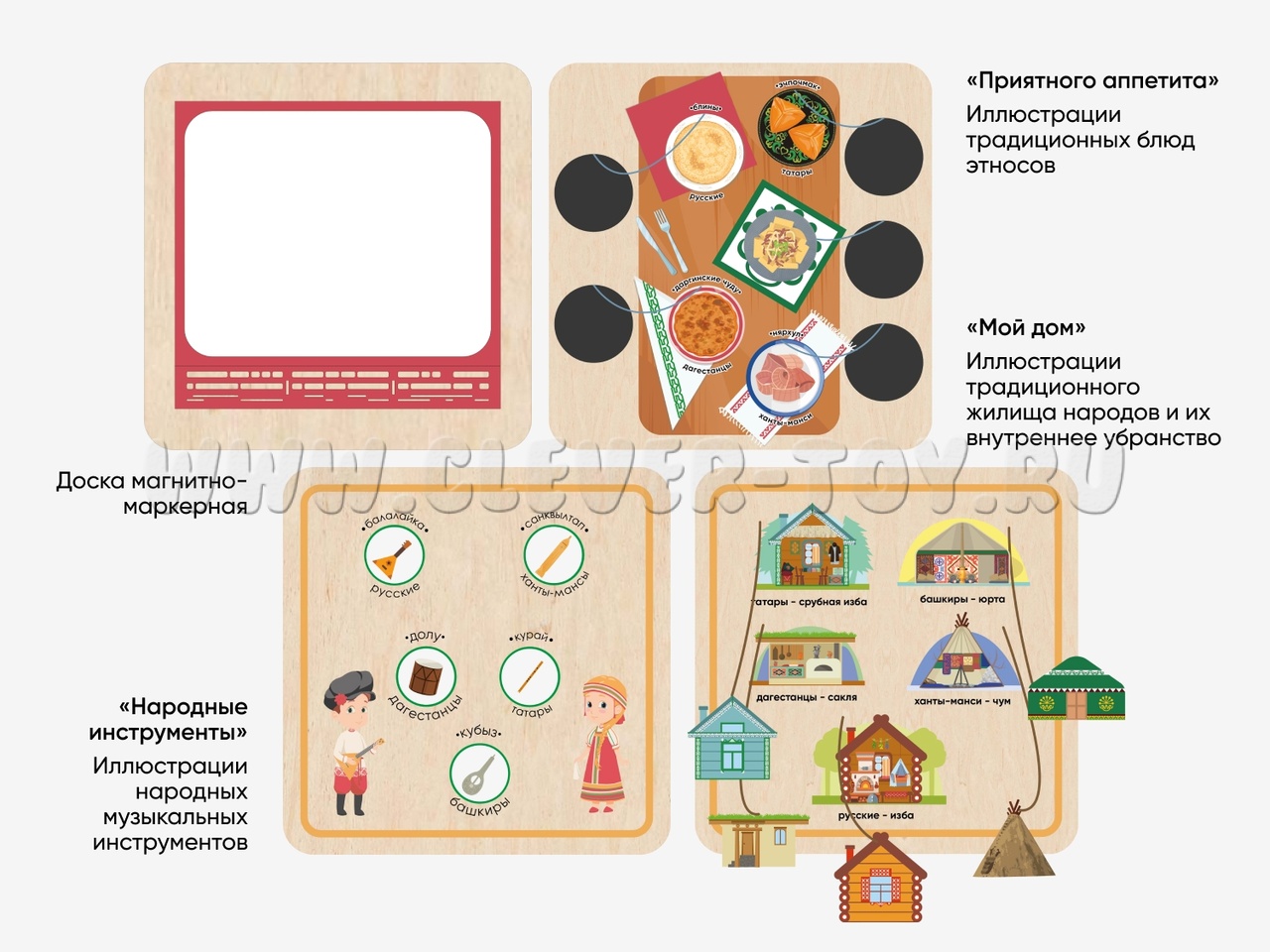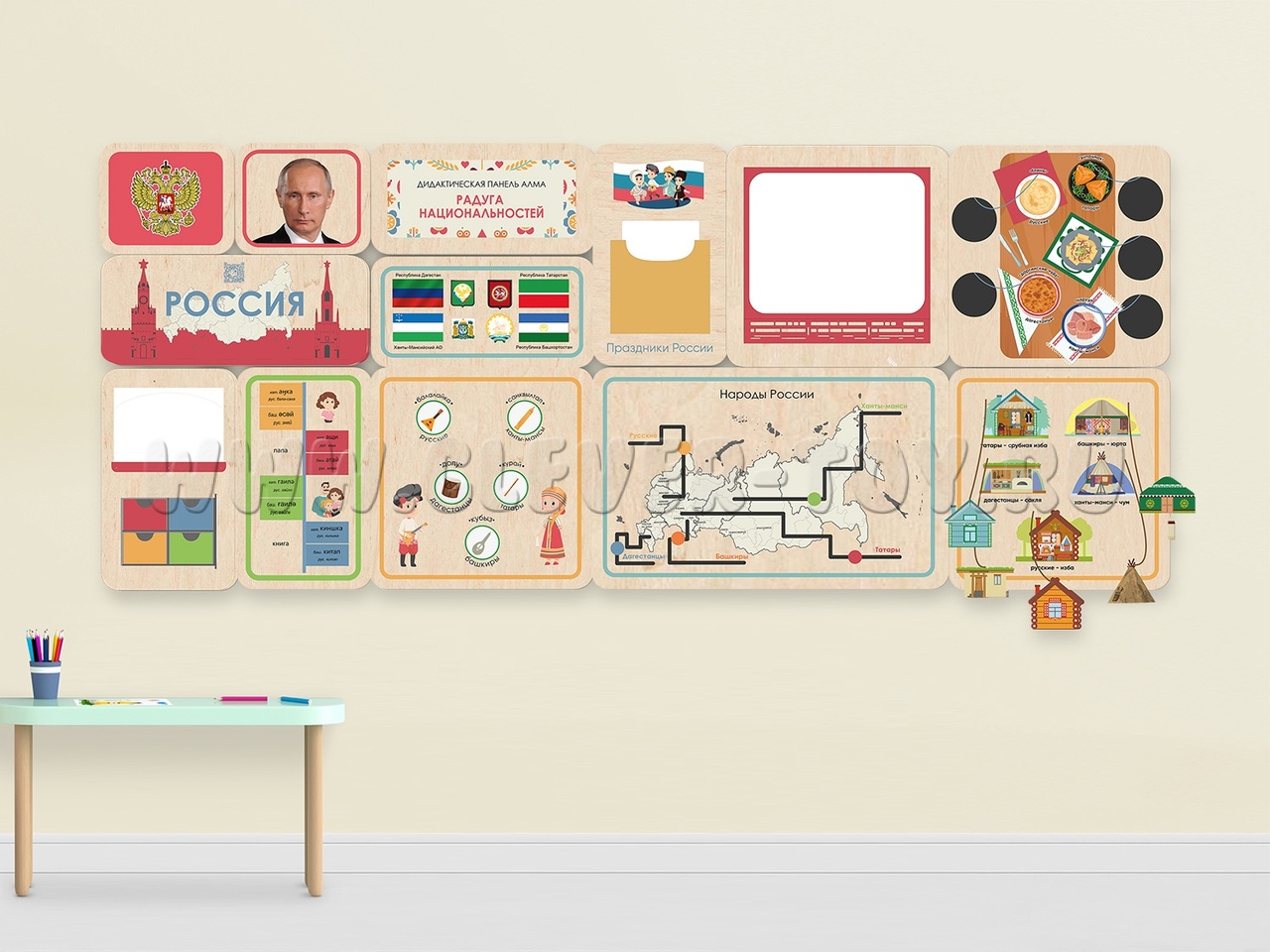 Комплект образовательных стеновых панелей для развития у дошкольников представлений о национальном многообразии Российской Федерации.